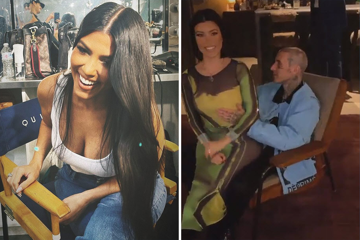 Kourtney Kardashian shows off major cleavage & hides her stomach as fans believe star is expecting with Travis Barker November 21, 2021 No Comments